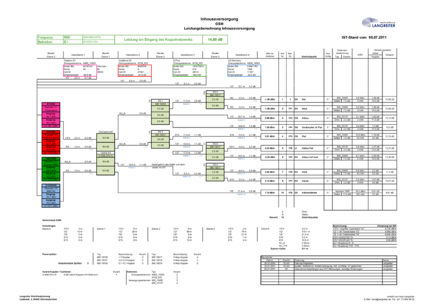 Beispiele von Pegelplänen einer Inhouseversorgung